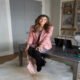Fit Tip: Size down in the cardigan. Wearing XS. Everything else is true to size. Wearing a small in the cami. I went up one size in the pants to a M but I should have stuck with a size small.
