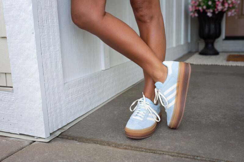 I wear a skort at least three times a week! This one is comfortable, a great length, and available in two colors! I love it paired with this sweatshirt and cap! And these sneakers just released in this beautiful blue color! They are perfect for spring!