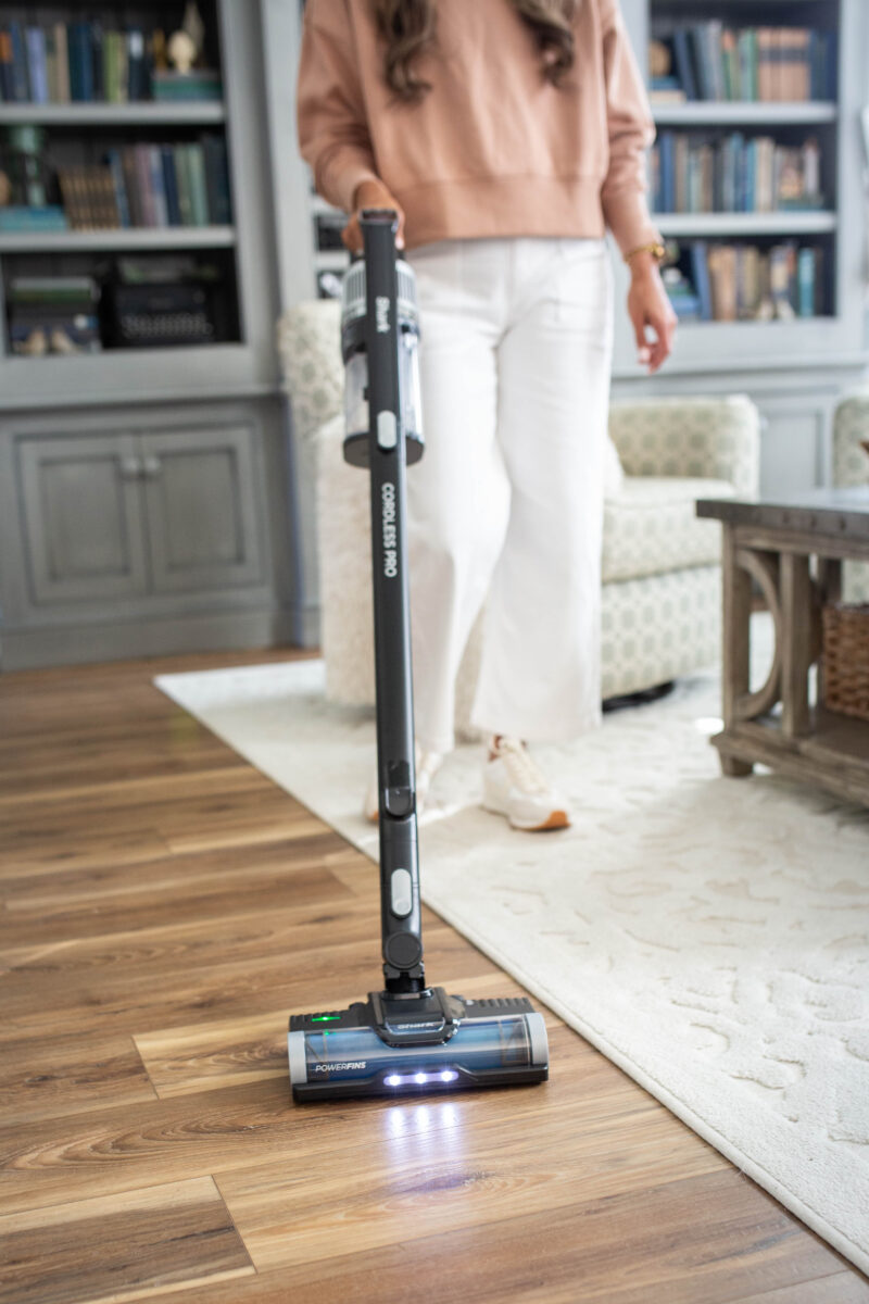 The Shark Cordless Pro IQ Stick Vacuum (similar here) comes in handy with a hairy dog and messy kids in and out of the house all the time! I love that it works on both carpets and hard floors! It also has some great attachments making it easy to clean your steps, car, and any smaller space!