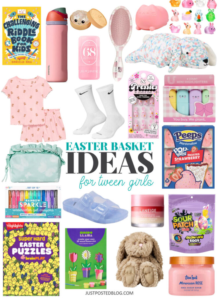 Challenging Riddle Book for Kids | 0wala Water Bottle | Glitter Dumpling | Sol Jelly Perfume Balms | Checked Wet Brush | Cat Squishie | Mini Resin Easter Animals | Weighted Stuffed Bunny • More HERE | PJ Set | N ike Socks | Press on Nails | Mini Animal Highlighters | Cosmetic Bag | Strawberry Pop Tart Peeps | Sparkle Gel Crayons | Jelly Slides | Laneige Lip Mask | Sour Patch Glow Eggs | Super Hard Easter Puzzles | DIY Paint Flowers Kit | Stuffed Bunny | Sugar Scrub