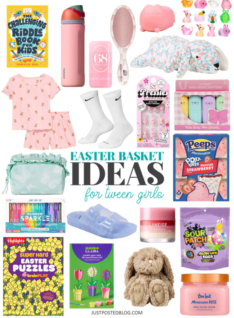 Challenging Riddle Book for Kids | 0wala Water Bottle | Sol Jelly Perfume Balms | Checked Wet Brush | Cat Squishie | Mini Resin Easter Animals | Weighted Stuffed Bunny • More HERE | PJ Set | N ike Socks | Press on Nails | Mini Animal Highlighters | Cosmetic Bag | Strawberry Pop Tart Peeps | Sparkle Gel Crayons | Jelly Slides | Laneige Lip Mask | Sour Patch Glow Eggs | Super Hard Easter Puzzles | DIY Paint Flowers Kit | Stuffed Bunny | Sugar Scrub