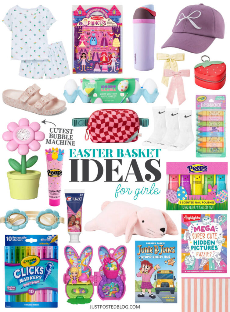 PJ Set | Princess Puffy Sticker Book | 0wala | Bow Hat | Sandals | DIY Paint Your Own Easter Egg Kit • Only $5!!!! | Hair Bows | Strawberry Jewelry Keeper Keychain | Checked Belt Bag | N1ke Socks | Lip Balm Set | Flower Bubble Machine | Peeps Bubble Bath | Flower Goggles: Sooooo cute! | Princess Toothpaste | Weighted Stuffed Bunny • More HERE | Peeps Scented Nailpolish | Polly Pocket Peeps | Junie B Jones Graphic Novel | Mega Super Cute Hidden Pictures & Puzzles | Striped Towel